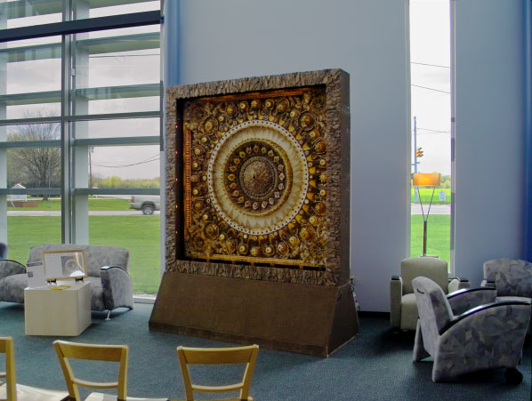 The exhibit didn’t have “an opening” as might be expected, but on April 19th I attended the advertised “Meet the Artist” event. Now, this has already become a tradition with my tour, as it allows many people to view it and take it in several times before being given an opportunity to talk about it or ask questions. This day was filled with friends, family, people I hadn’t seen in a long time and many whom I did not know that came to meet me and express their appreciation for this work that I had created. To me, everyone there was special, but one of them capped off the day, as she is Cincinnati Enquirer’s premiere art critic, Sara Pearce, who wrote a very complimentary article and a posting for her blog. She shared with her readers that “…the mandala is a fascinating and intricate piece…” I was, and still am, very gratified to have my work affirmed by her learned scrutiny, as well you can imagine. All in all, it was a good start. I learned a lot from this first exhibit and began to look forward to the next stop along its path – which actually happened nearly by accident, through shear synchronicity and became a very memorable place to exhibit The Natural Mandala.