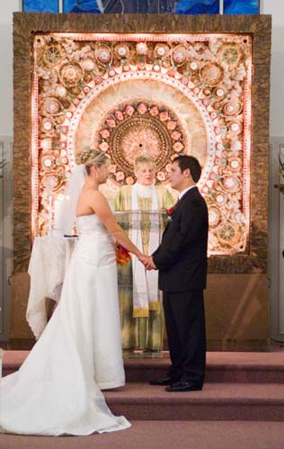 Another featured first that Garden Park Unity offered The Natural Mandala Tour was that it became yet another kind of “energy showcase” for presiding over the solemnity of a several weddings. On the day that I first met with Rev. Keene at the church, she told me that there would be a wedding there three days following its arrival. The couple that was getting married wasn’t aware that the mandala would be there for their wedding and I was a little reserved about that situation. Rev. Keene assured me that it would be fine and indeed it was. She told me later that they were surprised and really loved having the mandala a part of the ceremony.